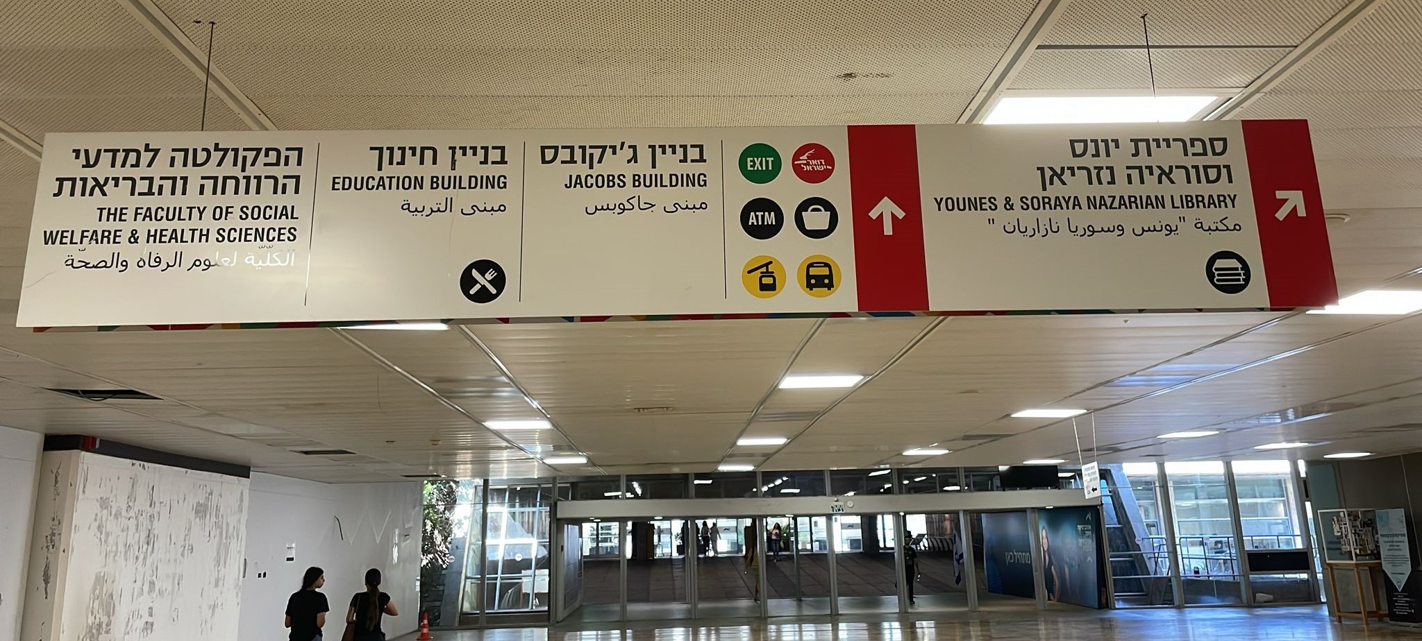 שילוט בשלוש שפות באוניברסיטת חיפה: