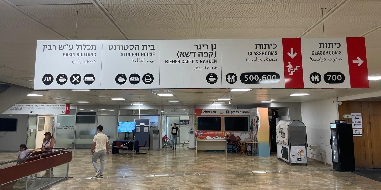 מומלץ לנקוט קו אחיד ועקבי הכולל שילוט בשלוש שפות: עברית, ערבית ואנגלית, שיישקף את המציאות היום-יומית של כלל הסטודנטיות והסטודנטים הלומדים בקמפוס ואורחיו, ויהווה עבורם עוגן של שייכות ונוחות במרחב.